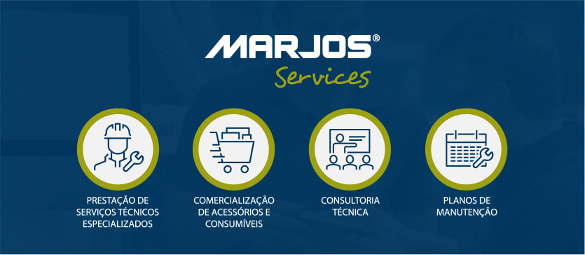 A MARJOS SERVICES é uma empresa do grupo MARJOS especialmente criada para garantir serviços de assistência técnica e pós venda de qualidade a todos os seus clientes.Com sede dentro do centro empresarial da Marjos - Equipamentos Industriais, SA em Vila do Conde, é uma empresa que se dedica à prestação de serviços de assistência técnica pós-venda, manutenção, consultoria, peças de substituição e desenvolvimento de equipamentos de movimentação e empilhamento.